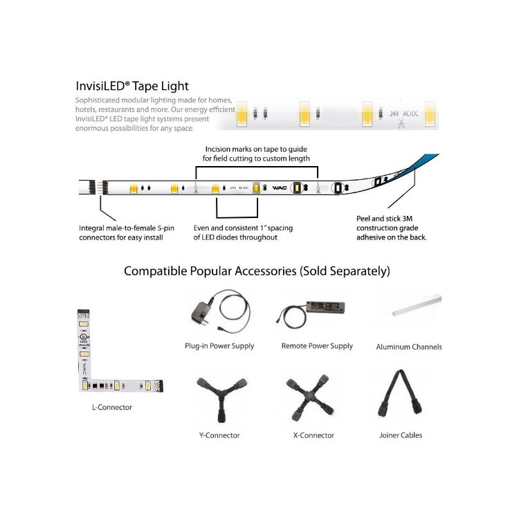Professional grade white tape light that delivers optimal color consistency and brightness. An ideal system for task or accent lighting applications.