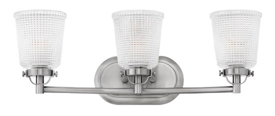 100w Bath Bennett MED Clear Holophane Polished Antique Nickel Bath Three Light