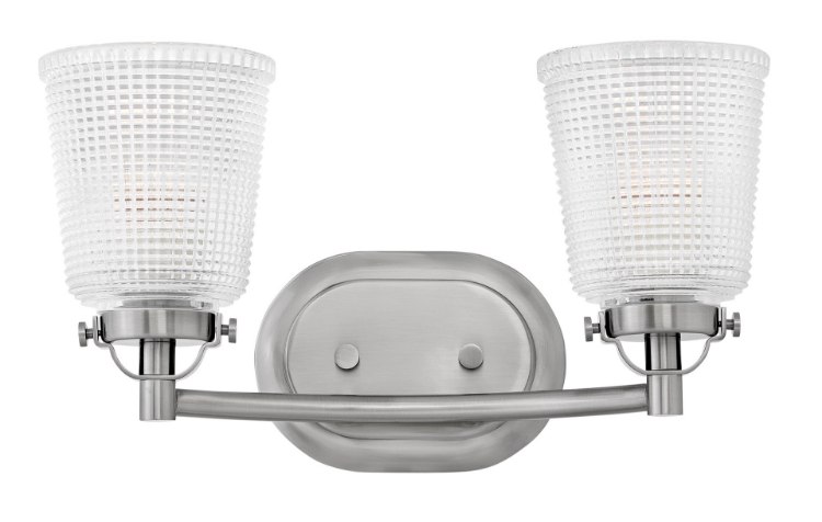100w Bath Bennett MED Clear Holophane Polished Antique Nickel Bath Two Light