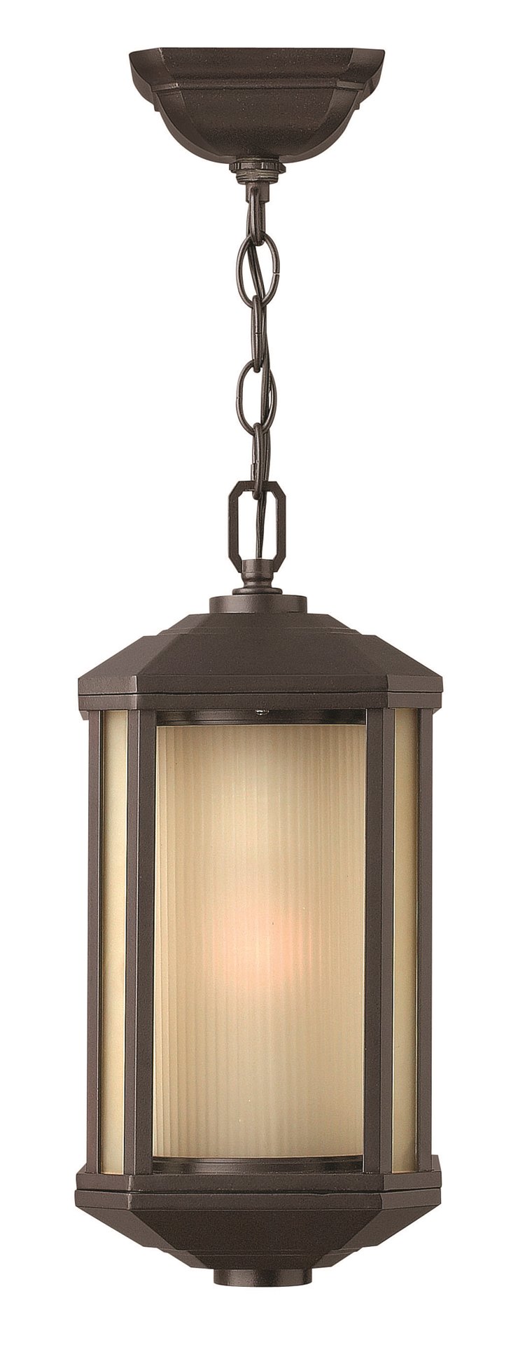 100w Outdoor Castelle MED Ribbed Etched Amber Cylinder Bronze Hanging