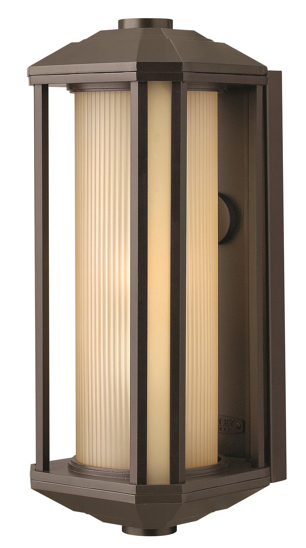 100w Outdoor Castelle MED Ribbed Etched Amber Cylinder Bronze Large Wall Mount
