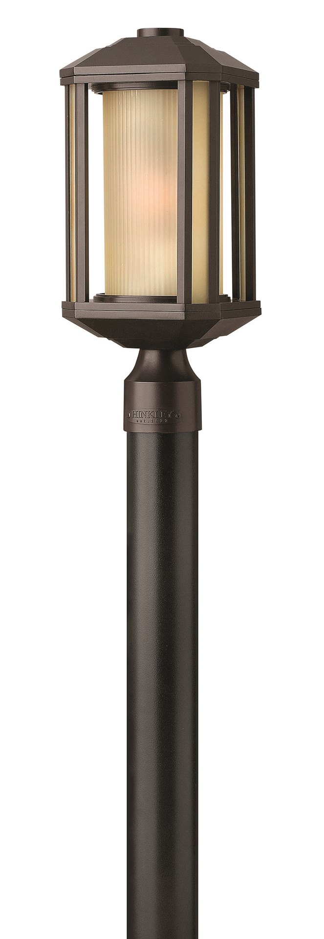 100w Outdoor Castelle MED Ribbed Etched Amber Cylinder Bronze Post Top/ Pier Mount