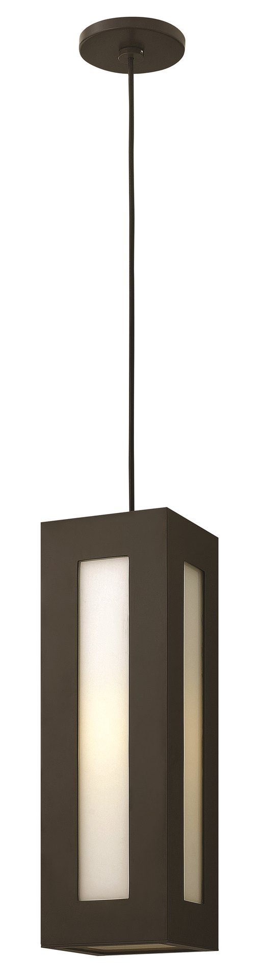 Dorians robust design in durable aluminum construction is offered in either Titanium or Bronze finishes. This contemporary fixture allows light to emit from white etched glass windows.