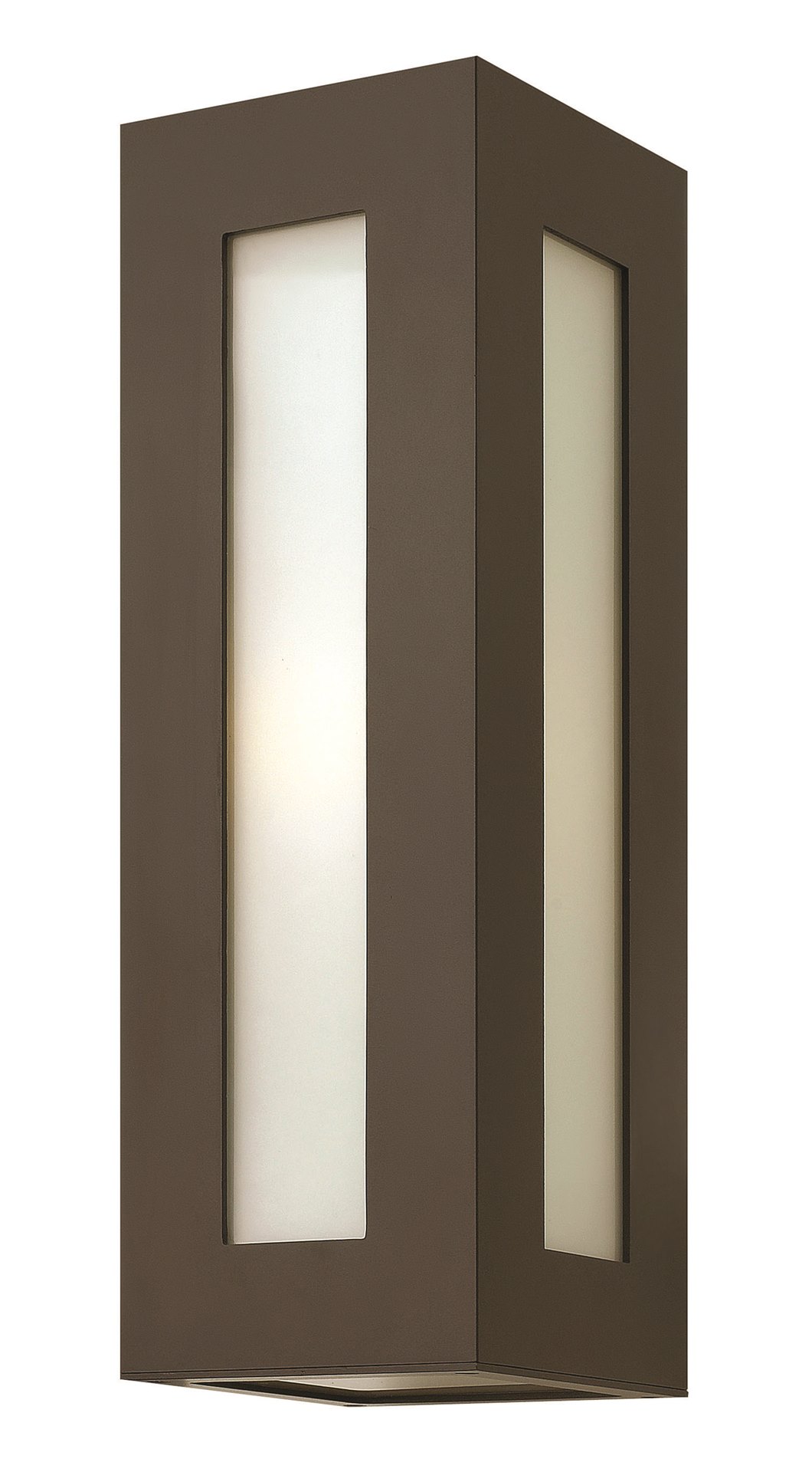 Dorians robust design in durable aluminum construction is offered in either Titanium or Bronze finishes. This contemporary fixture allows light to emit from white etched glass windows.