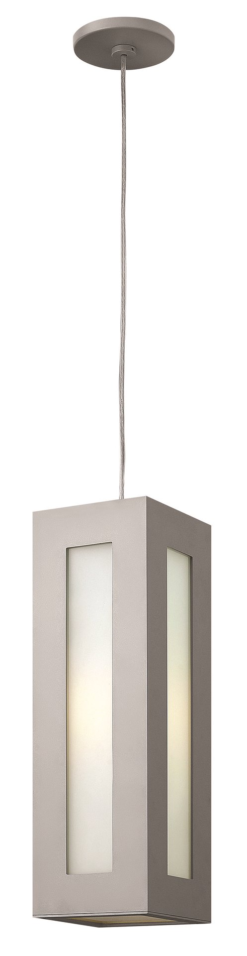 Dorians robust design in durable aluminum construction is offered in either Titanium or Bronze finishes. This contemporary fixture allows light to emit from white etched glass windows.