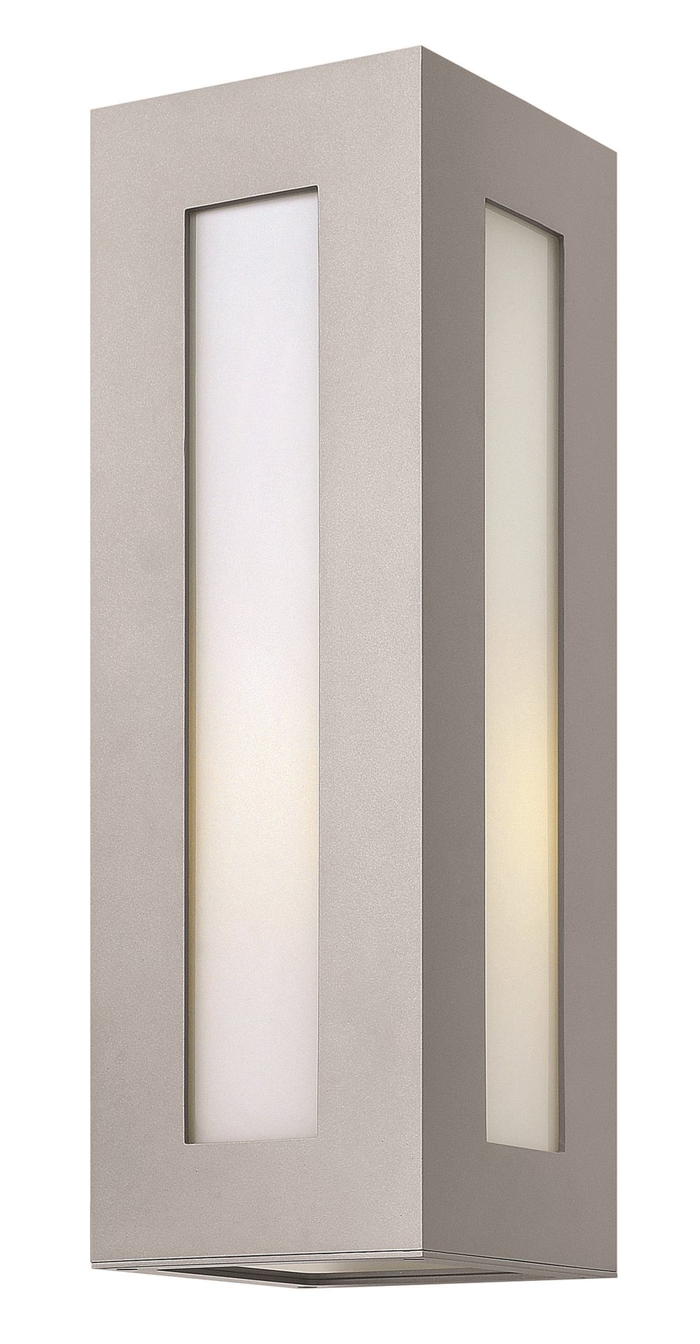 Dorians robust design in durable aluminum construction is offered in either Titanium or Bronze finishes. This contemporary fixture allows light to emit from white etched glass windows.