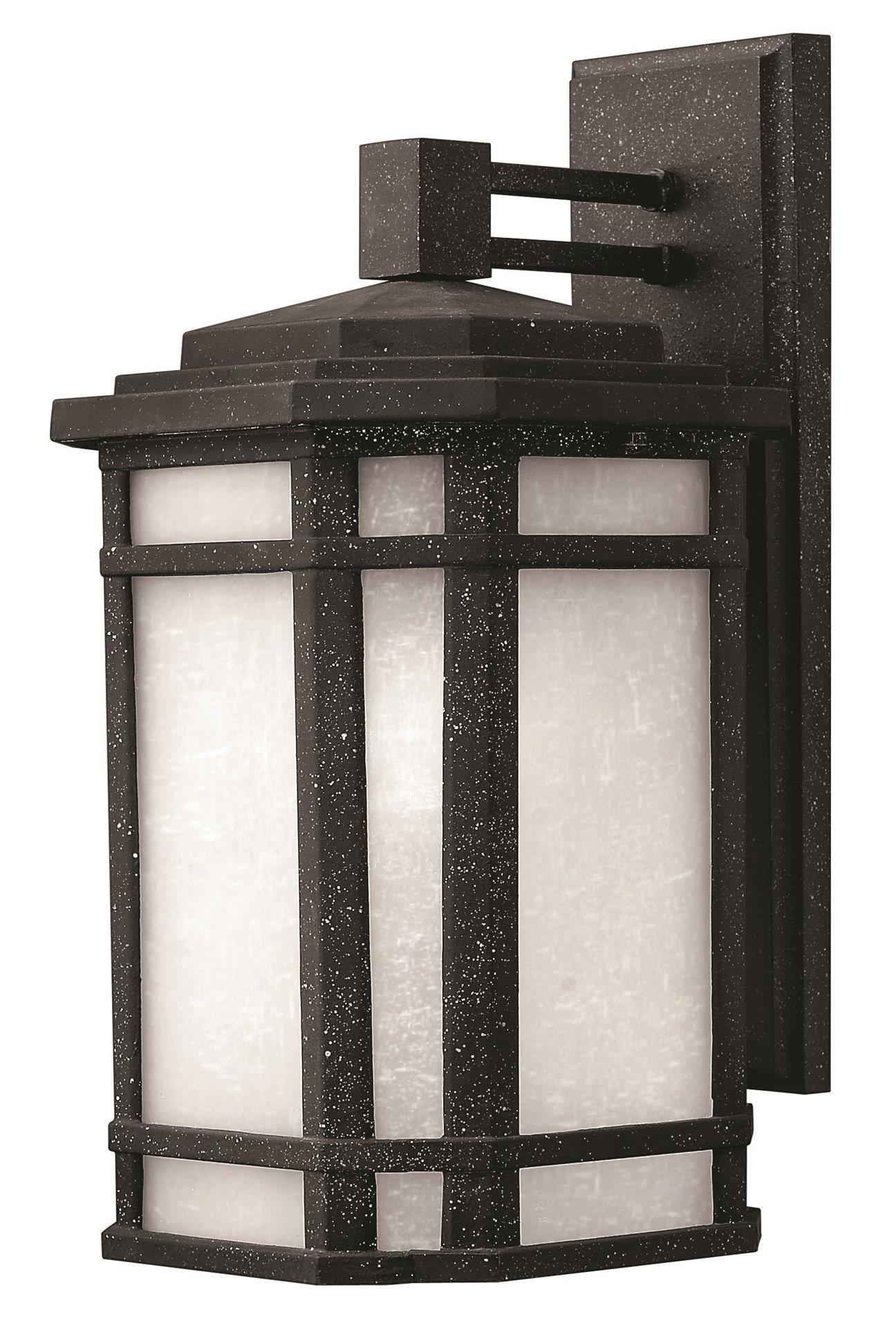 Cherry Creeks modern take on the popular Arts and Crafts style has a timeless appeal. The cast aluminum construction is enhanced by the warmth of the finish and the vintage-looking linen glass.