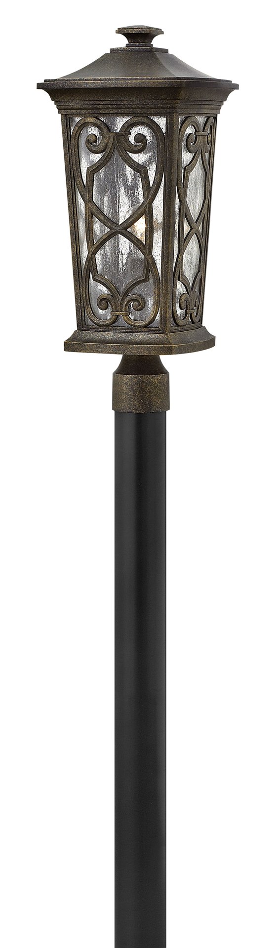 Enzo is inspired by a romantic lantern design. Blending beauty and durability, the intricately die cast aluminum construction features graceful scrolls with Old World allure while the rich Autumn finish and clear seedy glass meld timeless elegance.