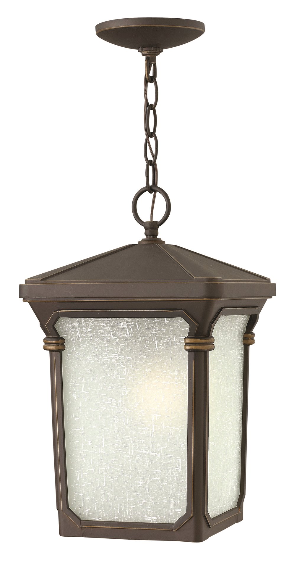 15w Outdoor Stratford LED White Linen Seedy Panels Oil Rubbed Bronze Hanging