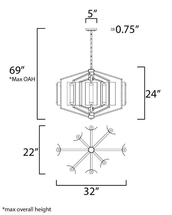 22" Reflect Black/Polished Nickel 8-Light LED Pendant