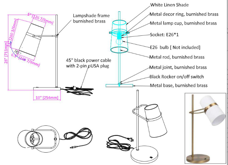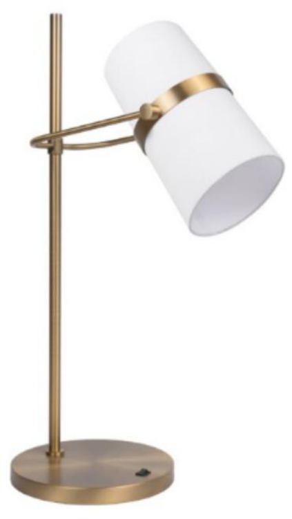 28" Burnished Brass White Line Shade 1-Light E26 Rocker Switch Hotel Table/Desk Lamp