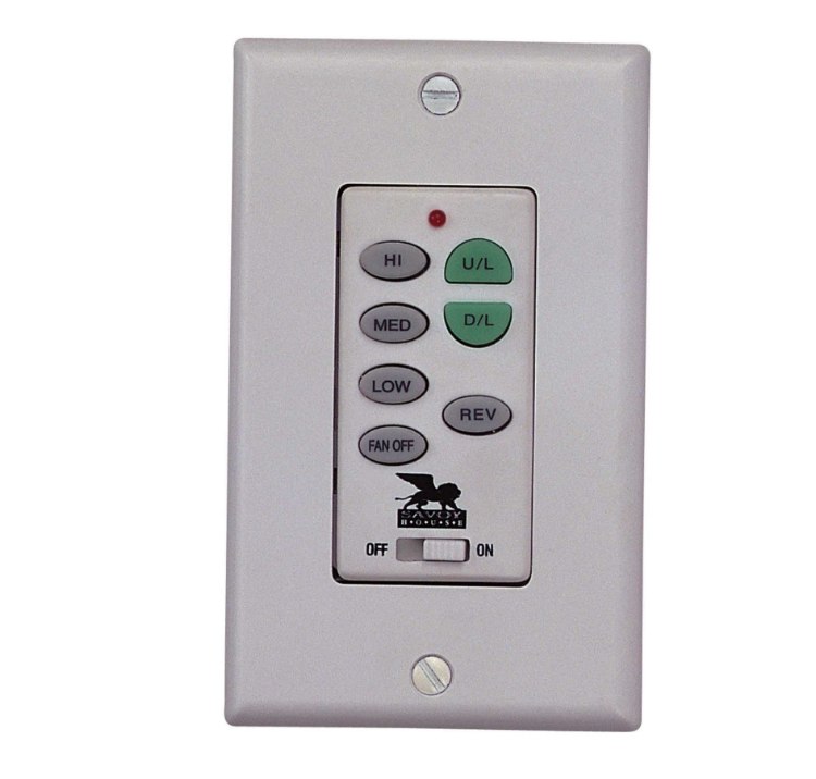 Wall-mount 3 speed reversible fan control with independent up/down light control featuring full-range dimming, for use with most ceiling fans.Fan control includes face plate (both Ivory and White) and installs in standard 2-wire single box wall switch. This wall unit can control only one fan and includes a 1-year limited warranty.