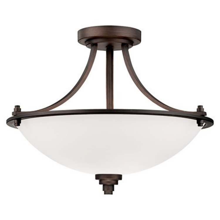 100w 17.5" Bristo 3 Light Rubbed Bronze Etched White Ceiling Semi-Flush
