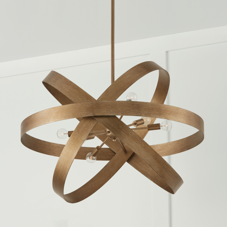The sculptural, statement-making 6-Light Chandelier evokes a contemporary glam with a bold, graphic shape. The brushed visual texture of the finish has luminescence in the light and adds a layer of visual interest to the stunning sputnik-like silhouette.