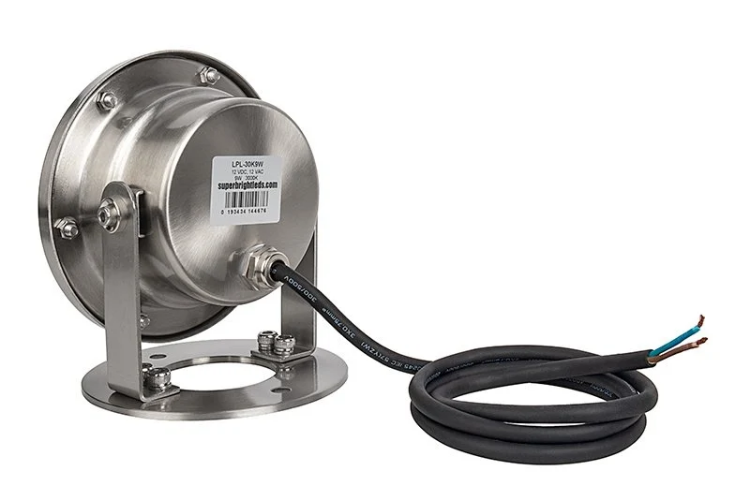 LPL series 9W Underwater LED Light is ideal for landscape lighting, suitable for both wet or dry locations. Sealed stainless steel body and high tempered glass protect the integrated LEDs from water intrusion. Durable adjustable mount provides stability for underwater application. Use to accent or highlight ponds, waterfalls, fountains, gardens, and more.