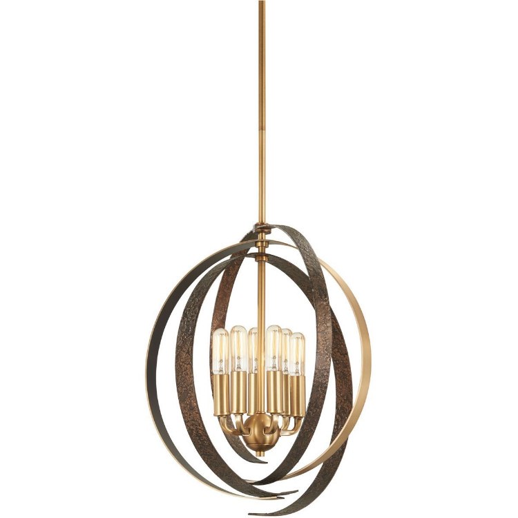 360w (6 x 60w) 20" Criterium Aged Brass with Textured Iron 6-Light Pendant