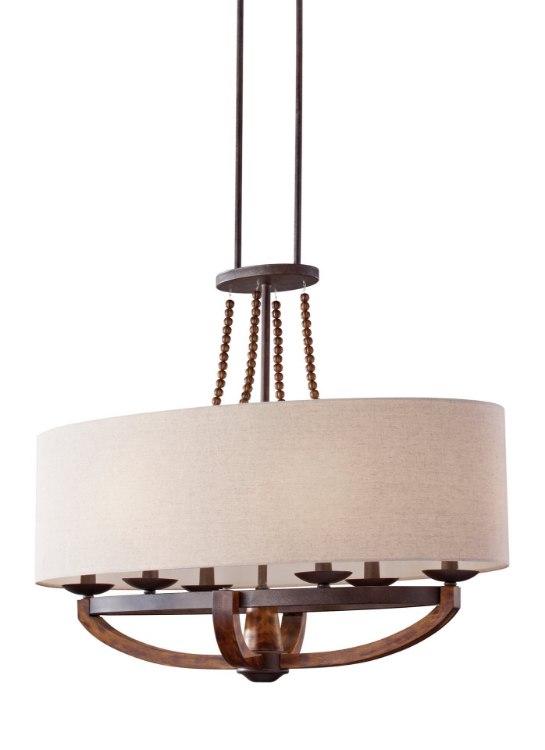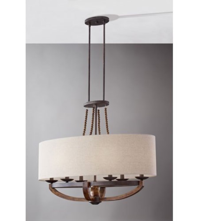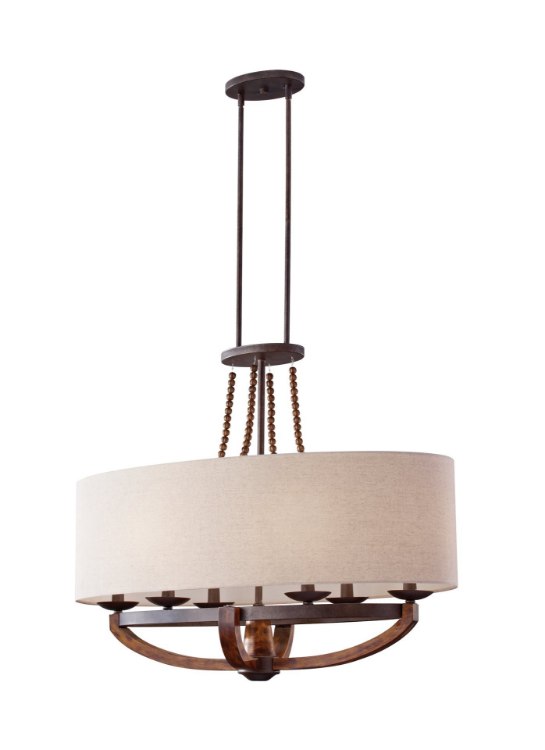 360w (6 x 60w) 36" Adan 6 Light Rustic Iron and Burnished Wood Cand Linear Chandelier