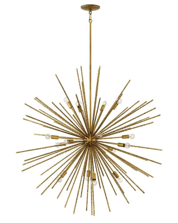 A seamless blend of vintage sophistication and contemporary clout, Tryst offers a striking mix of design elements. Hammered Bronze stems radiating from a spherical body shimmer as the light dances across the facets, creating a robust yet airy effect.