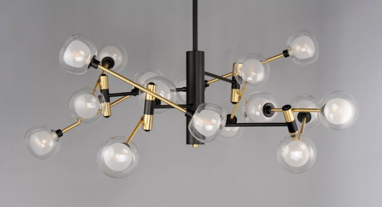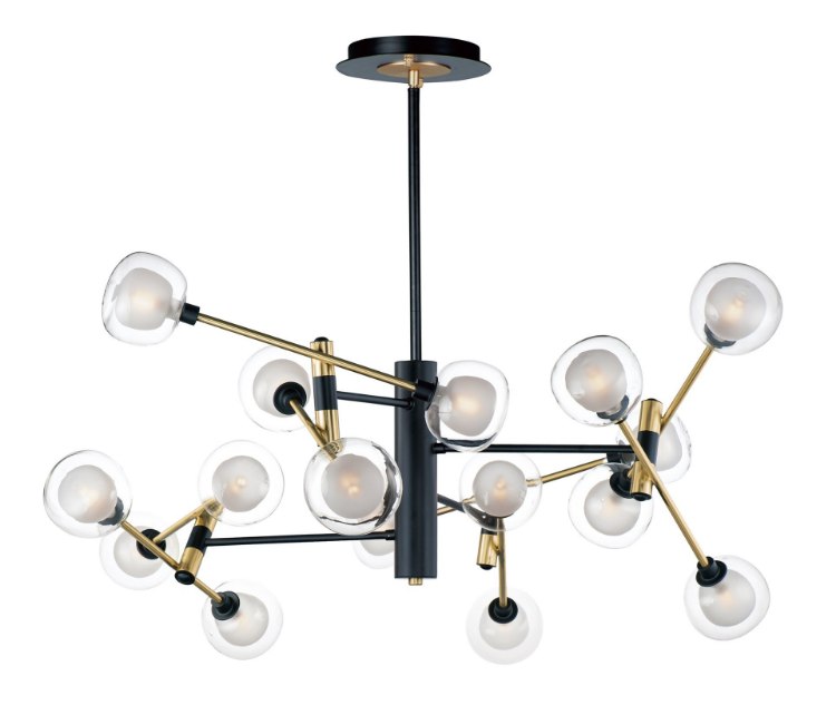 This unique design features arms of Black with Gold accents that supports glass in glass orbs that are Clear on the exterior and Frosted on the interior. The glass orbs are threaded which allows for secure attachment without the use of external screws. Ample light is provided from LED G9 lamps that are included.