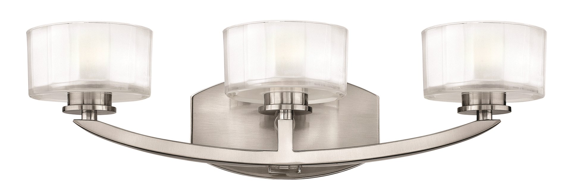 60w Bath Meridian G-9 Thick Faceted Clear Inside Etched Brushed Nickel Bath Three Light