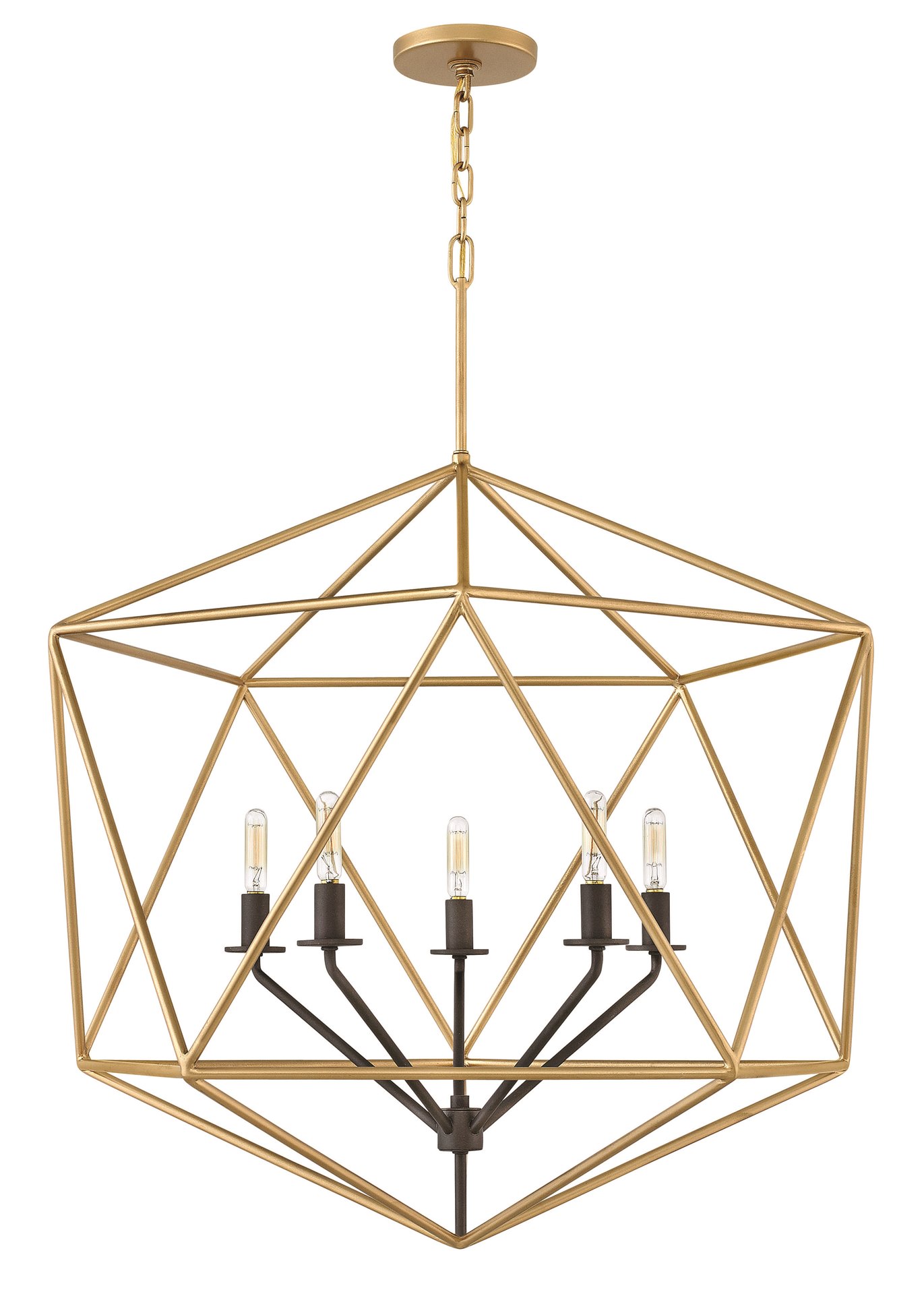 Sleek and chic, Astrid is designed as an airy geometric beauty balanced with robust welded construction. The inner light cluster, uniquely wired from the bottom, appears to float inside the outer cage. The two-tone finish further enhances the layering effect for added depth and dimension.