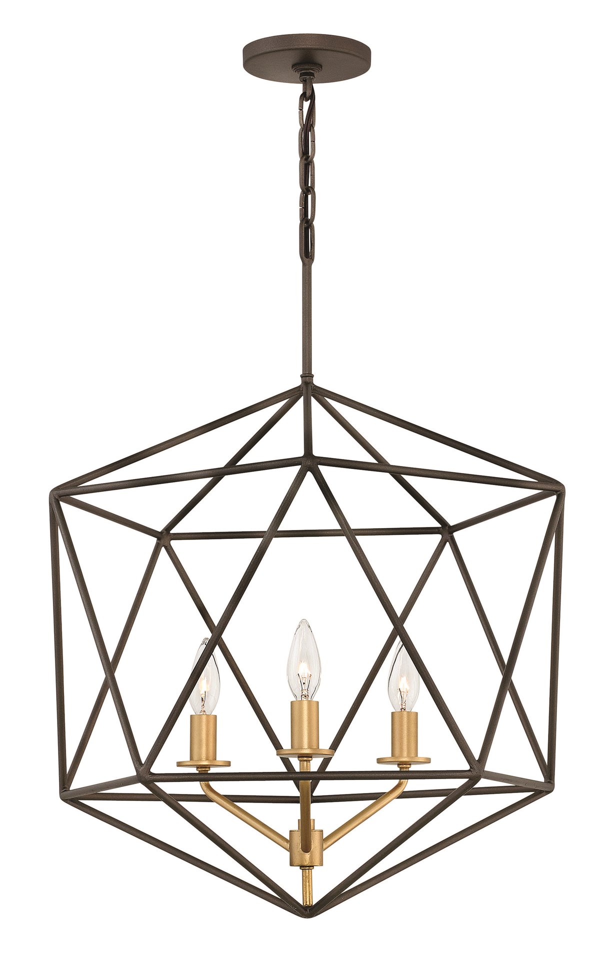 Sleek and chic, Astrid is designed as an airy geometric beauty balanced with robust welded construction. The inner light cluster, uniquely wired from the bottom, appears to float inside the outer cage. The two-tone finish further enhances the layering effect for added depth and dimension.