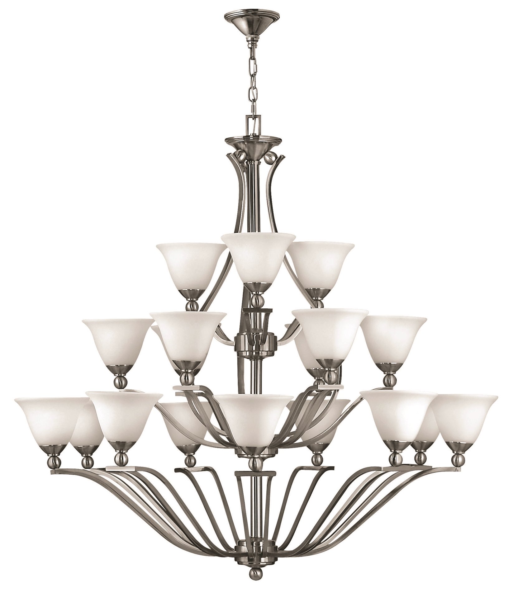60w Chandelier Bolla MED Etched Opal Brushed Nickel Three Tier Foyer