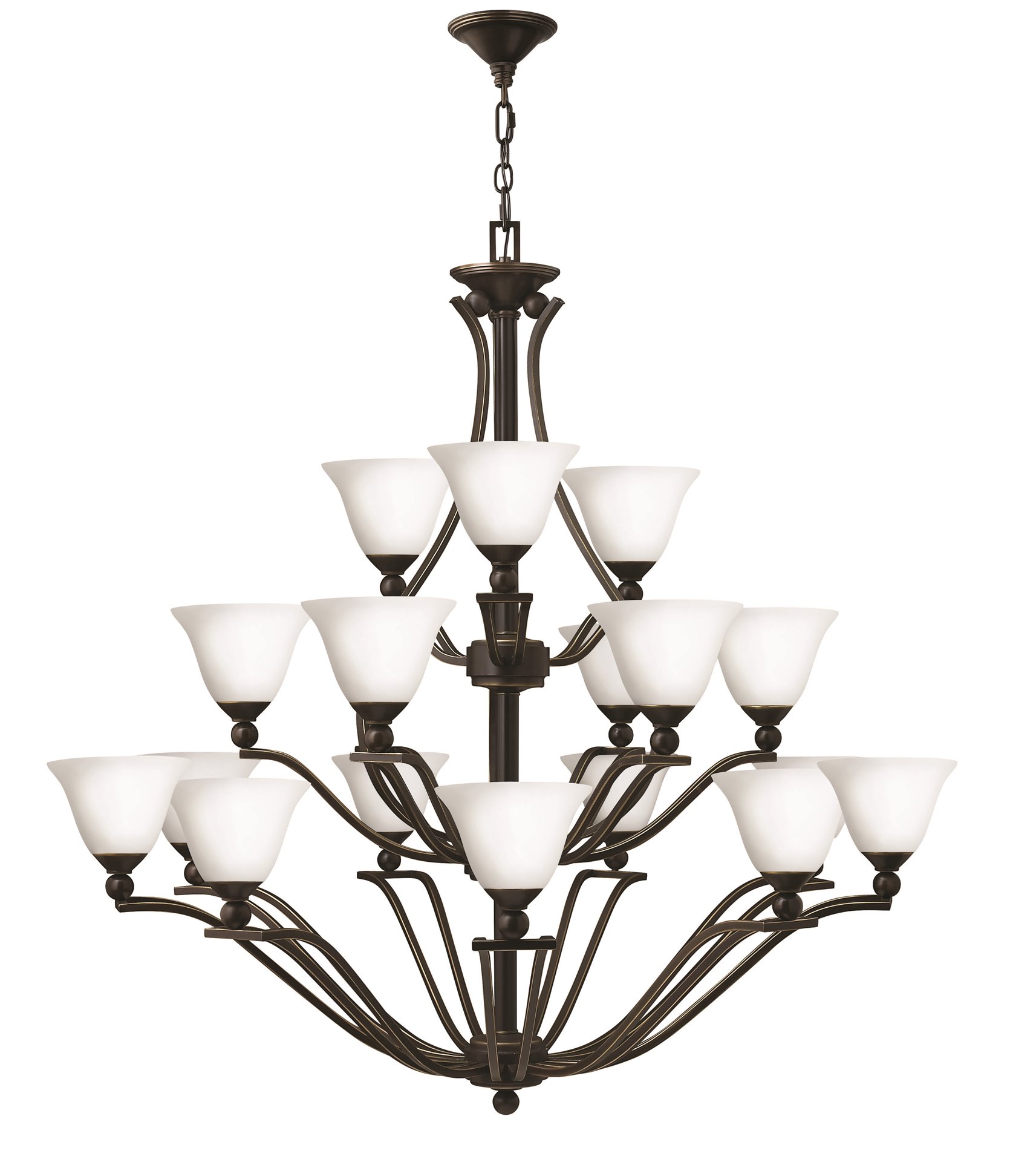 60w Chandelier Bolla MED Etched Opal Olde Bronze Three Tier Foyer