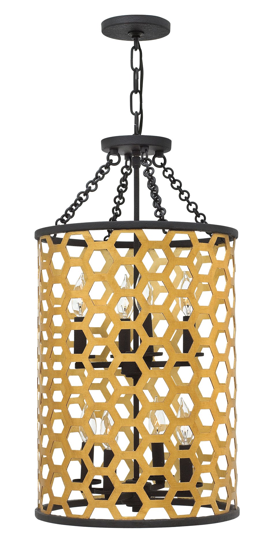 Felix�s bold honeycomb, hexagonal pattern of laser cut steel showcases a winning combination of Sunset Gold and Textured Black, offered in a variety of sleek cylindrical shapes for stunning visual impact.