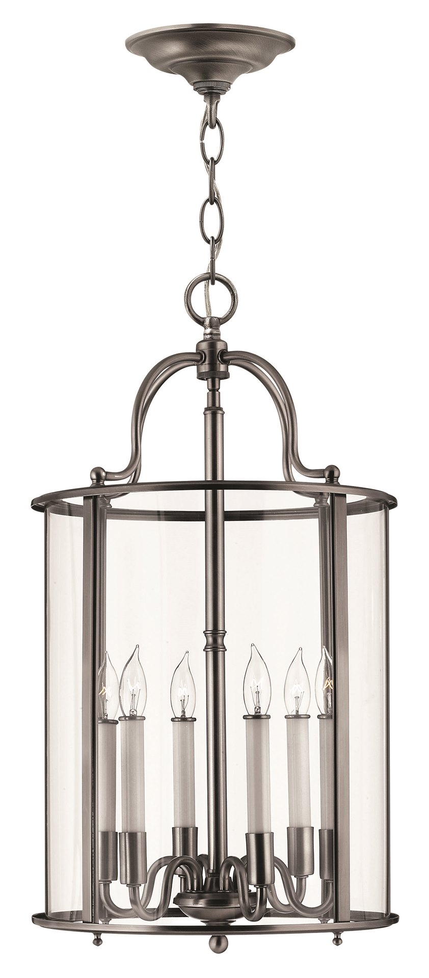 60w Foyer Gentry CAND Clear Rounded Panels Pewter Single Tier Foyer