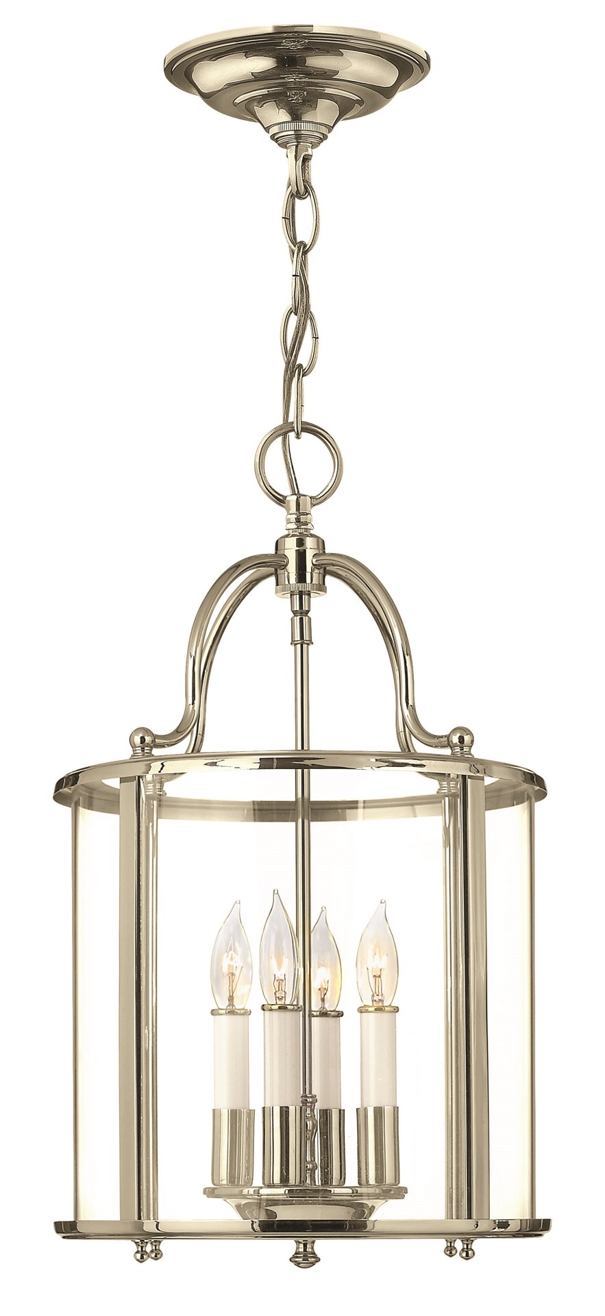 60w Foyer Gentry CAND Clear Rounded Panels Polished Nickel Single Tier Foyer