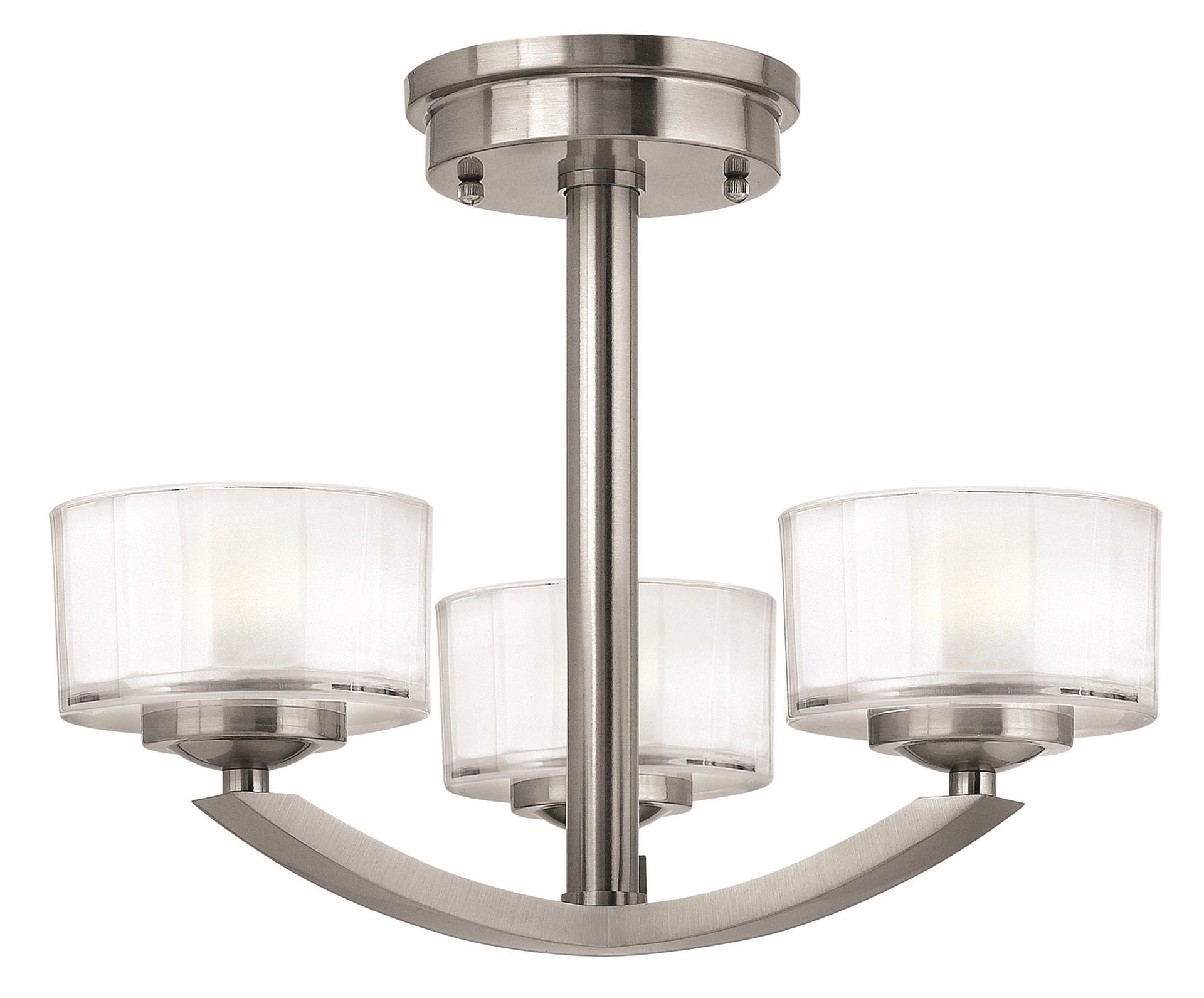 60w Foyer Meridian G-9 Thick Faceted Clear Inside Etched Brushed Nickel Semi-flush Mount