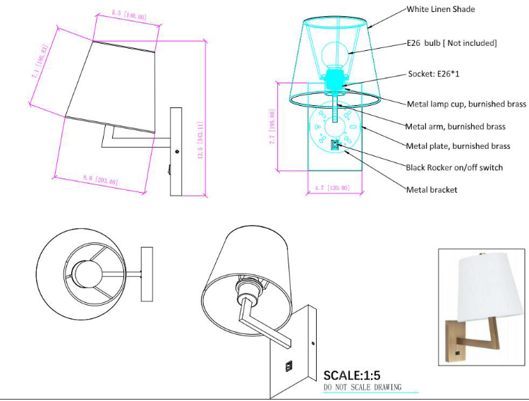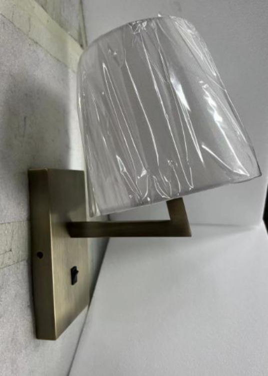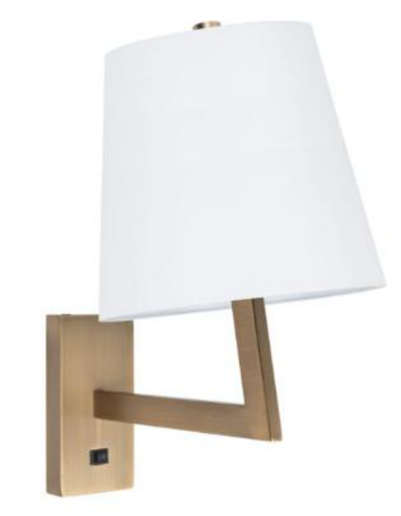 8" Burnished Brass White Line Shade 1-Light E26 Rocker Switch Hotel Wall Headboard Sconce