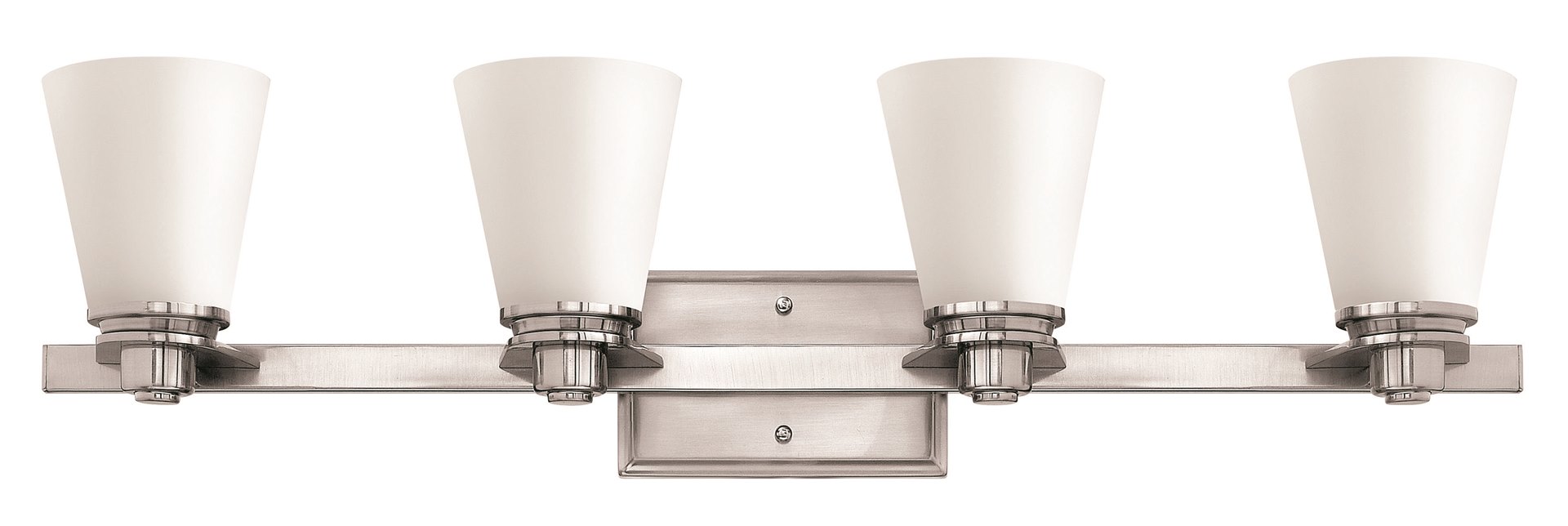 100w Bath Avon MED Etched Opal Brushed Nickel Bath Four Light