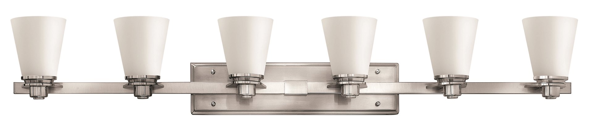 100w Bath Avon MED Etched Opal Brushed Nickel Bath Six Light