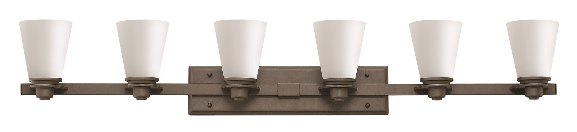 100w Bath Avon MED Etched Opal Buckeye Bronze Bath Six Light