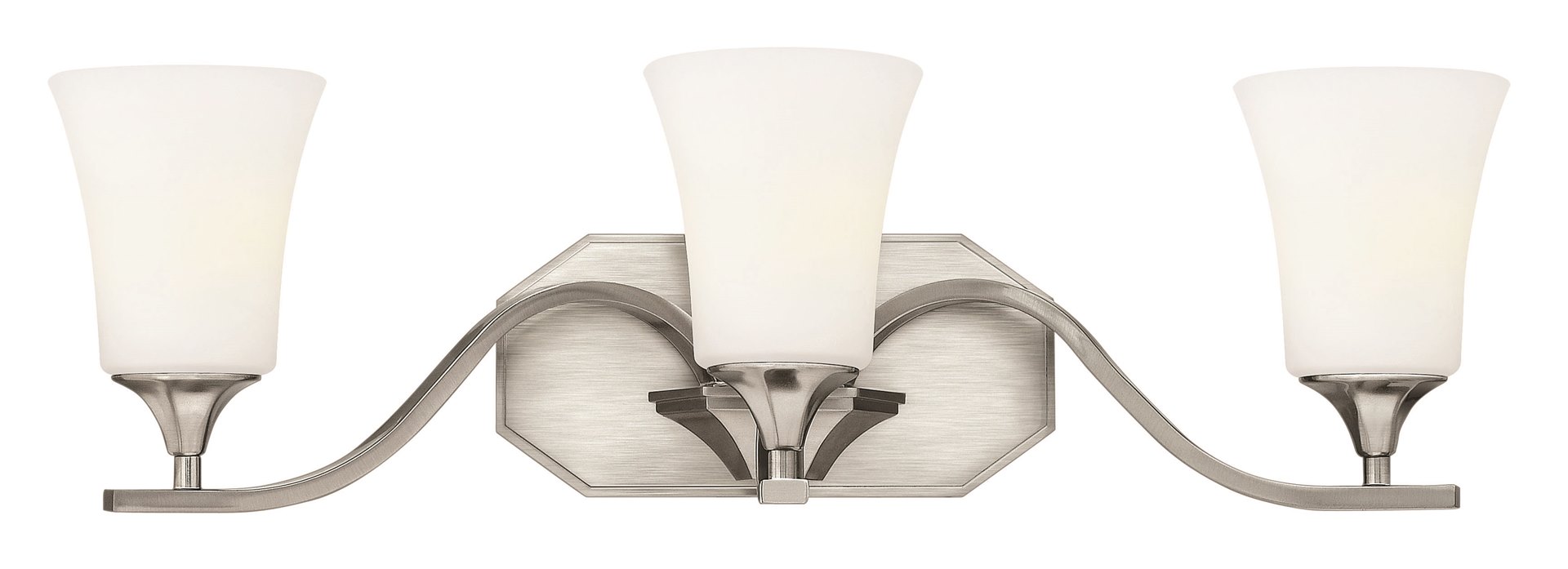100w Bath Brantley MED Etched Opal Brushed Nickel Bath Three Light