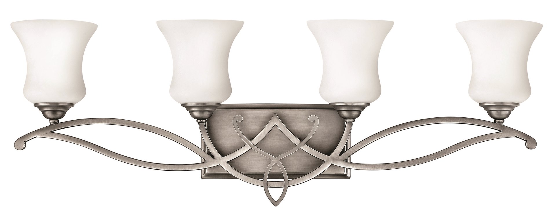 100w Bath Brooke MED Etched Opal Antique Nickel Bath Four Light