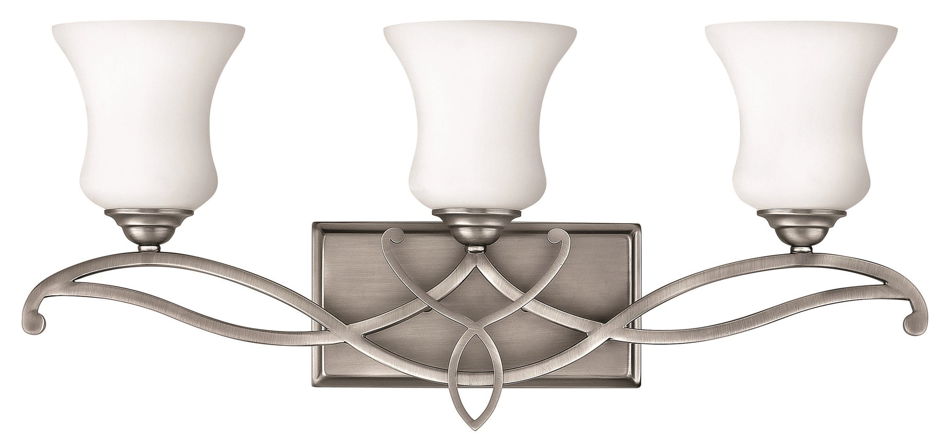 100w Bath Brooke MED Etched Opal Antique Nickel Bath Three Light