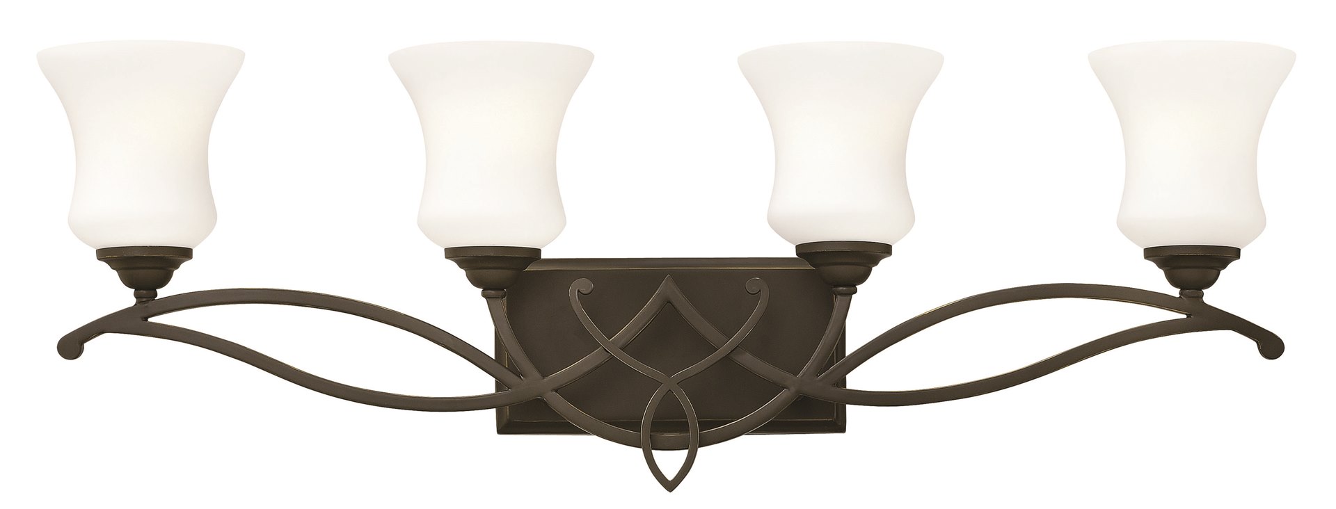 100w Bath Brooke MED Etched Opal Olde Bronze Bath Four Light