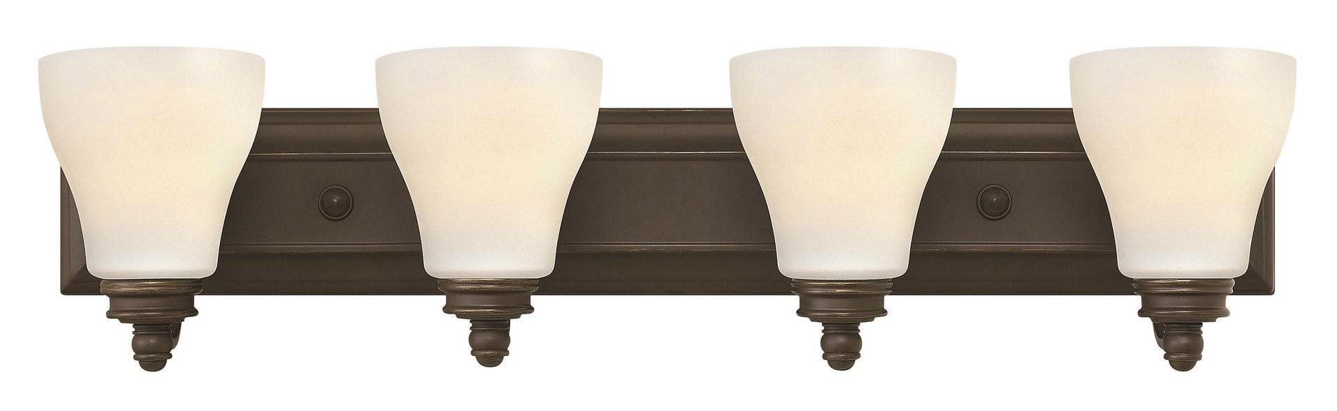 100w Bath Claire MED Etched Opal Oil Rubbed Bronze Bath Four Light