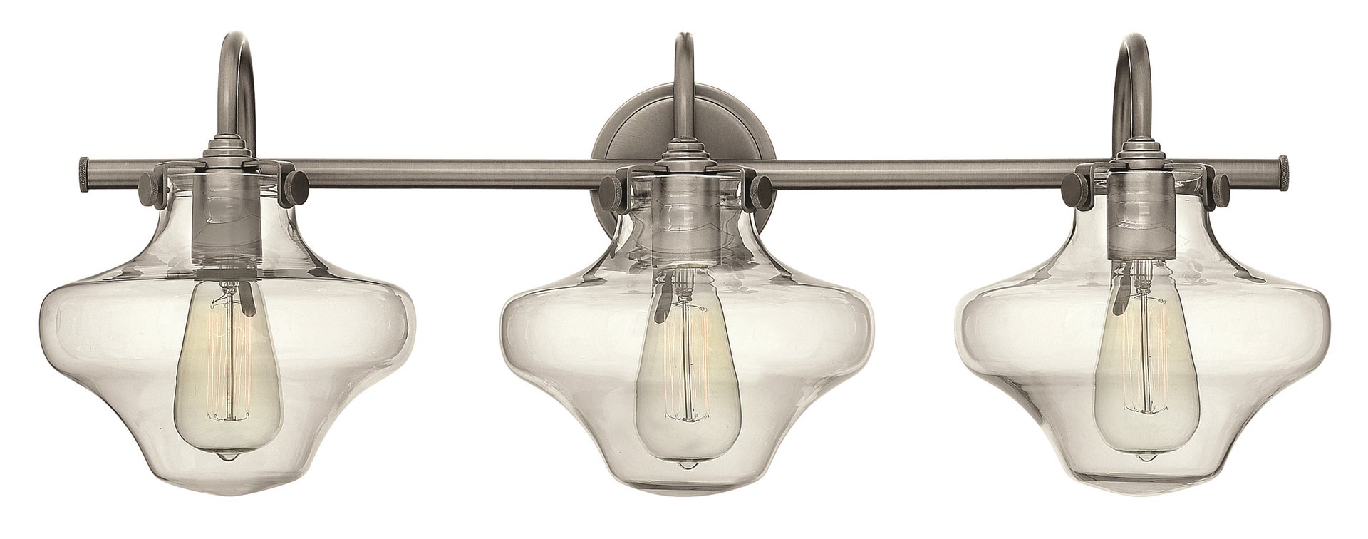 100w Bath Congress MED Clear Glass Antique Nickel Bath Three Light