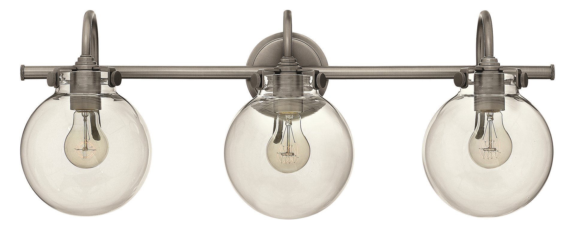 100w Bath Congress MED Clear Glass Antique Nickel Bath Three Light