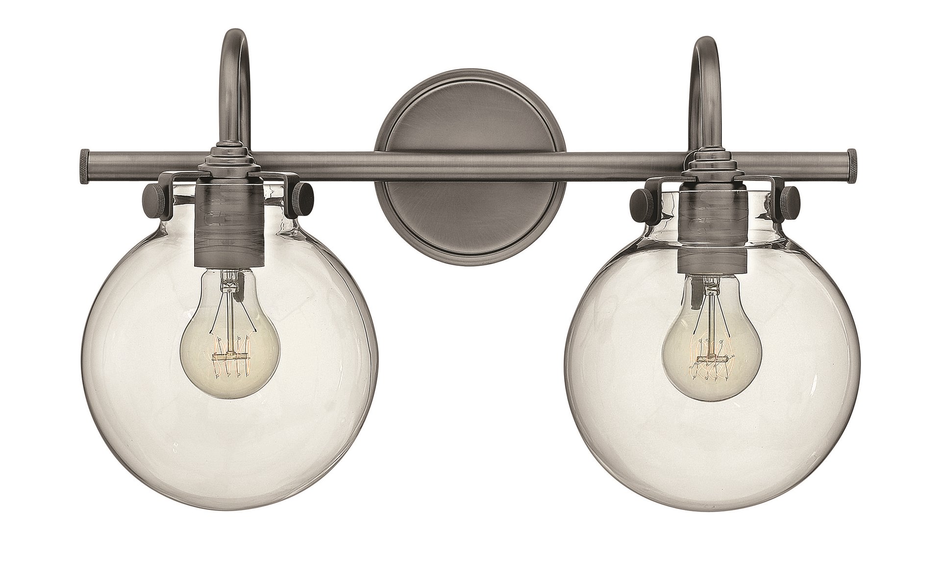 100w Bath Congress MED Clear Glass Antique Nickel Bath Two Light