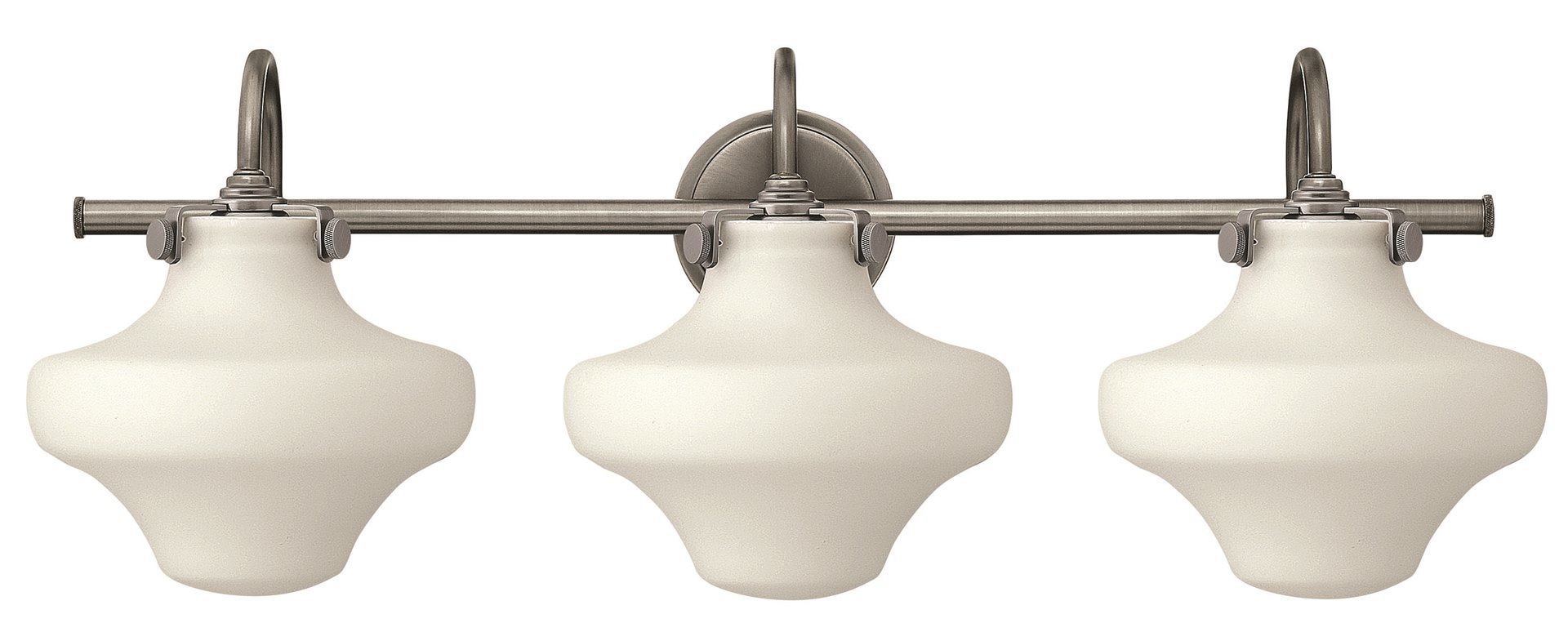 100w Bath Congress MED Etched Opal Antique Nickel Bath Three Light