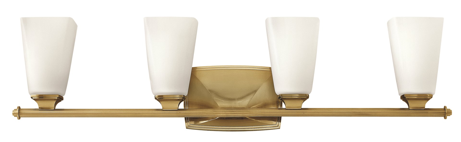 100w Bath Darby MED Etched Opal Brushed Caramel Bath Four Light