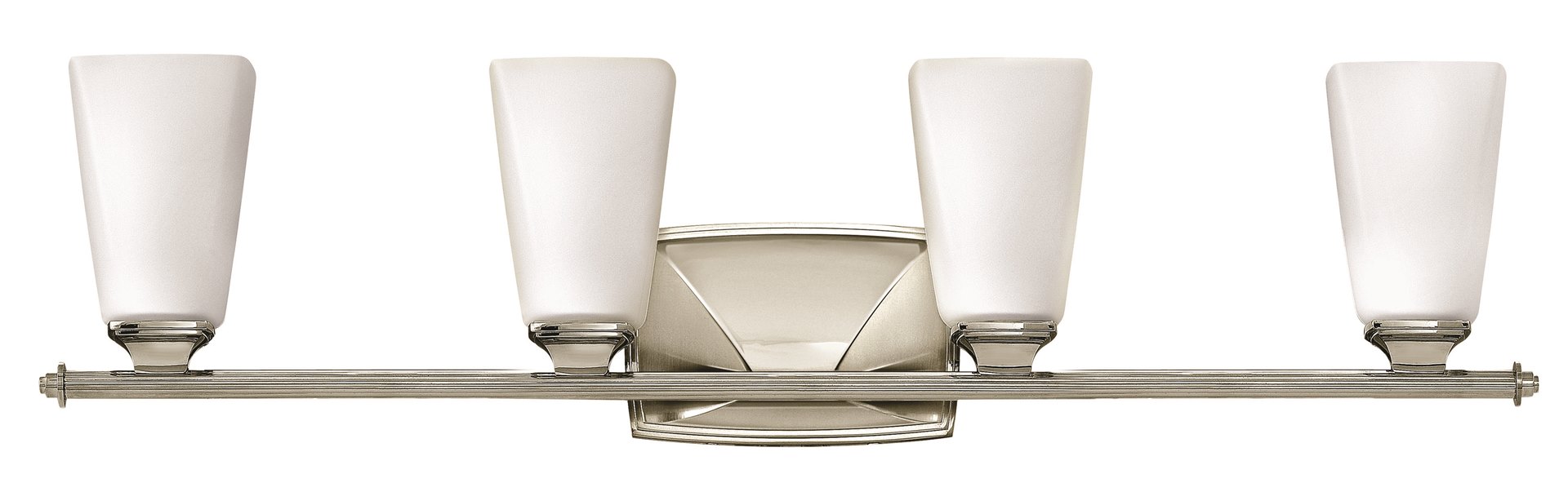100w Bath Darby MED Etched Opal Polished Nickel Bath Four Light