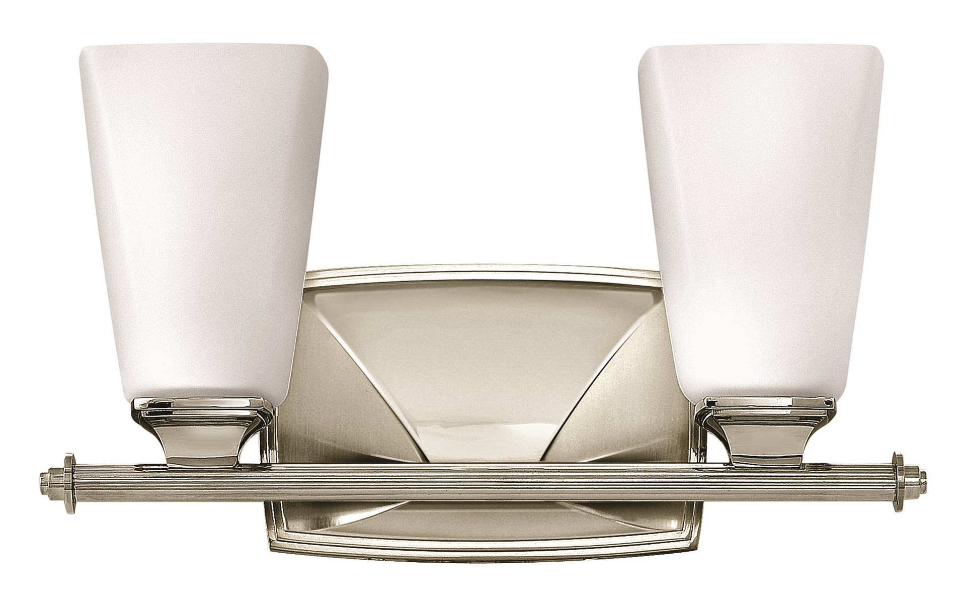 100w Bath Darby MED Etched Opal Polished Nickel Bath Two Light