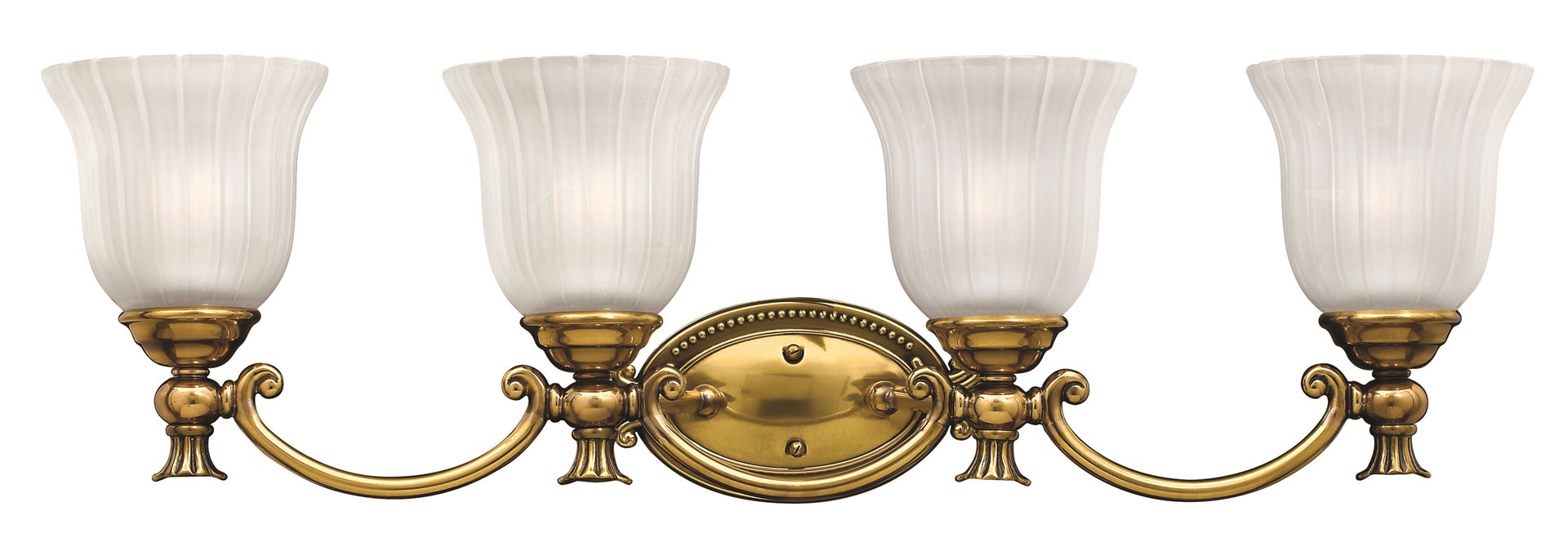 100w Bath Francoise MED Frosted Ribbed Burnished Brass Bath Four Light