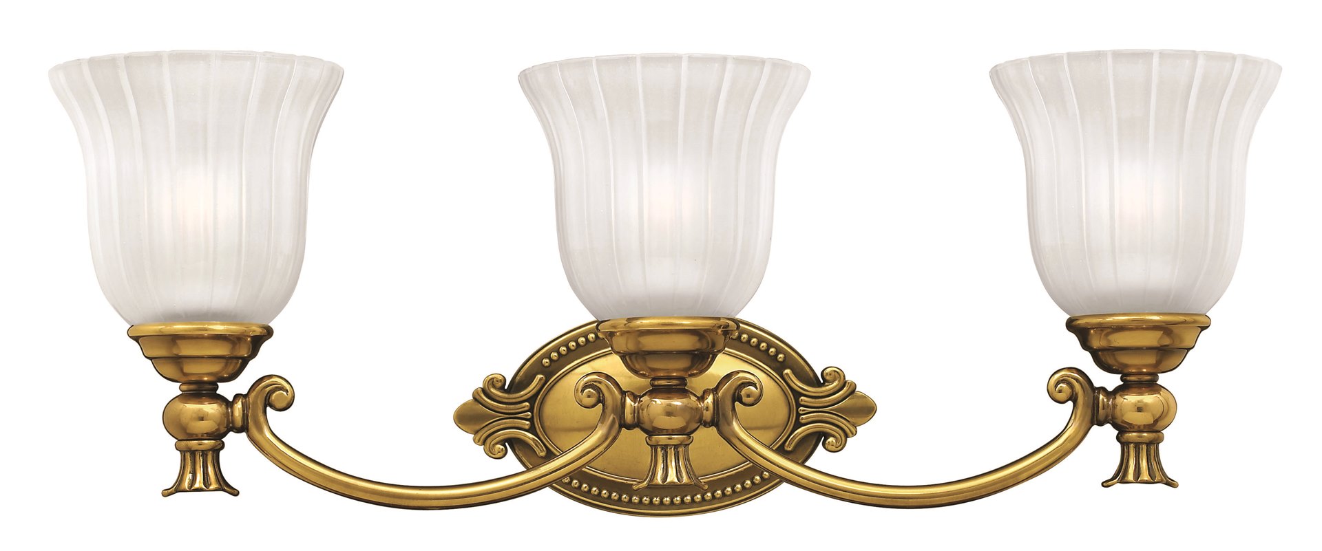 100w Bath Francoise MED Frosted Ribbed Burnished Brass Bath Three Light